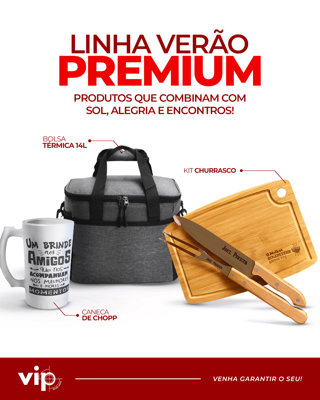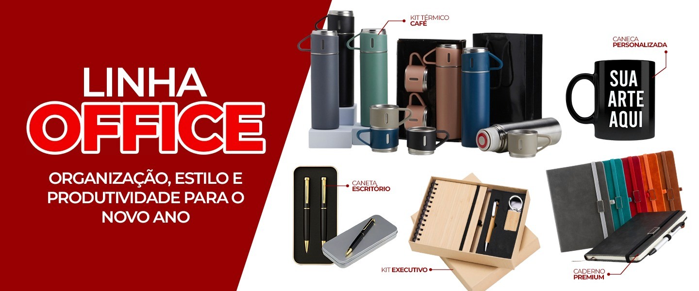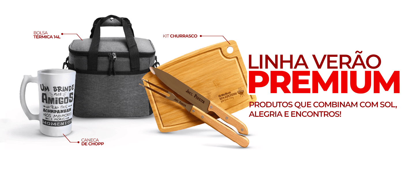Copos, canecas, chaveiros, kits churrasco e outras ideias criativas para presentear ou fortalecer sua marca. Tudo com o seu logo, suas cores e a sua cara.